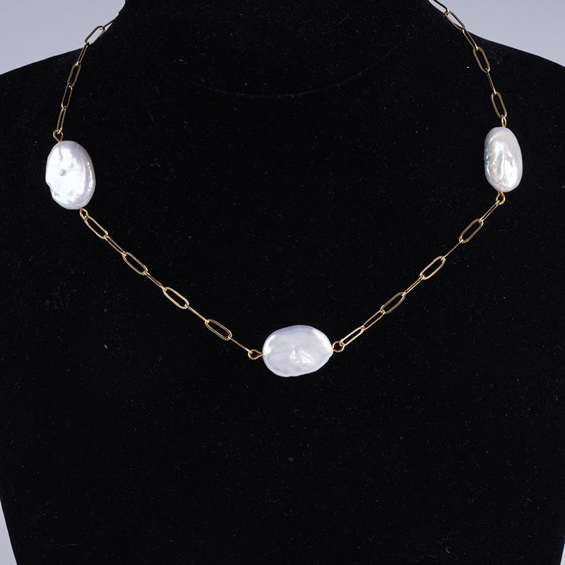 Manufacturer Wholesale 14-16mm Baroque Oval Square Natural Freshwater Pearl Necklace Bracelet Versatile Fashion Beaded Jewelry