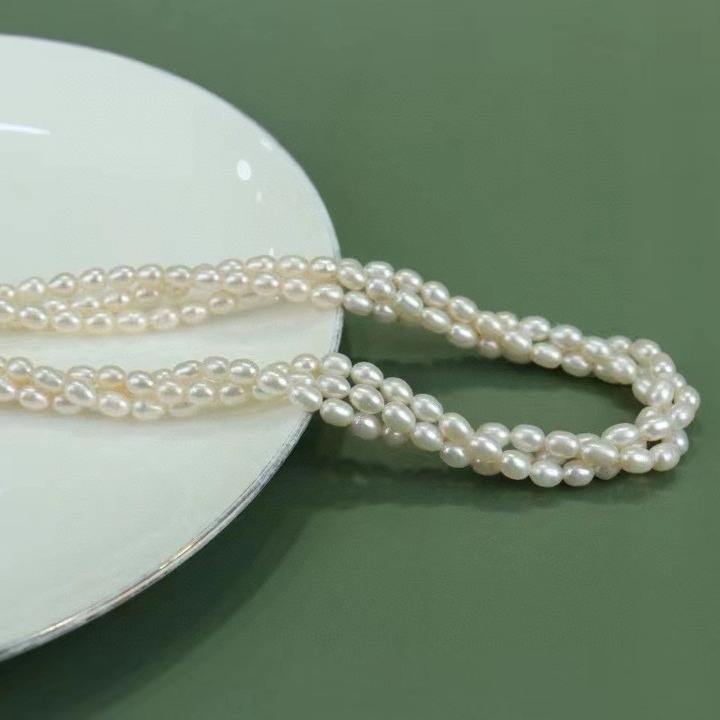 Manufacturer Wholesale 4-5mm Freshwater Hemp Pearl Necklace Strong Light Silver Gray Small Rice Beads 4-5mm Freshwater Pearl