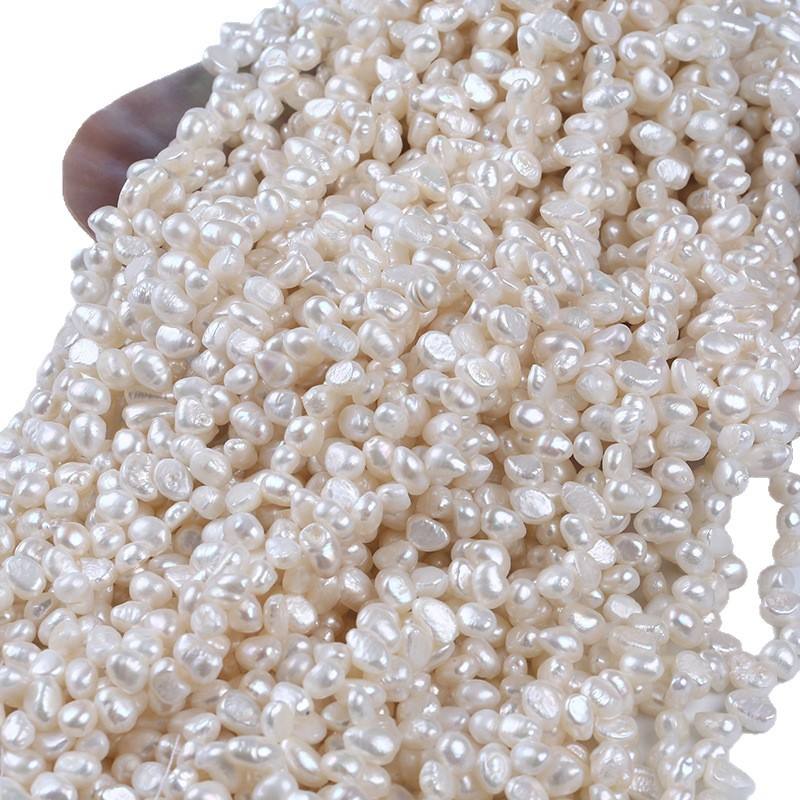 Vente en gros par le fabricant, collier de perles d'eau douce naturelles baroques blanches de 7-8 mm, 37 trous, double face, léger, pour bricolage