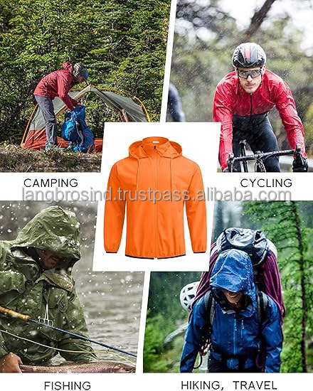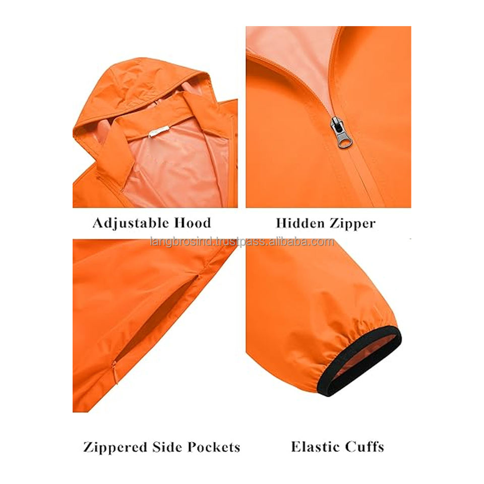 Manufacturer Wholesale Fabric Summer Outdoor Safari Jacket Breathable Waterproof Hooded Rain Jersey Woven Hiking Adults