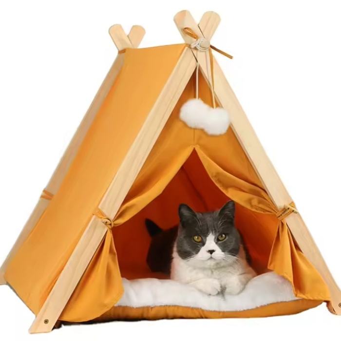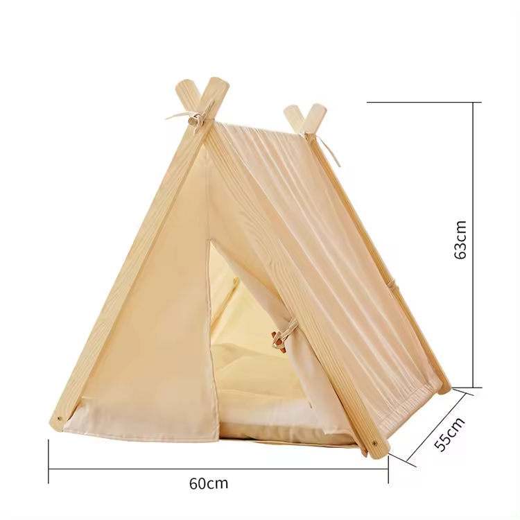 Manufacturer Wholesale Cool Silk Wadding comfortable casita Teepee Gato wooden Dog Bed small Tent cat Cages Houses