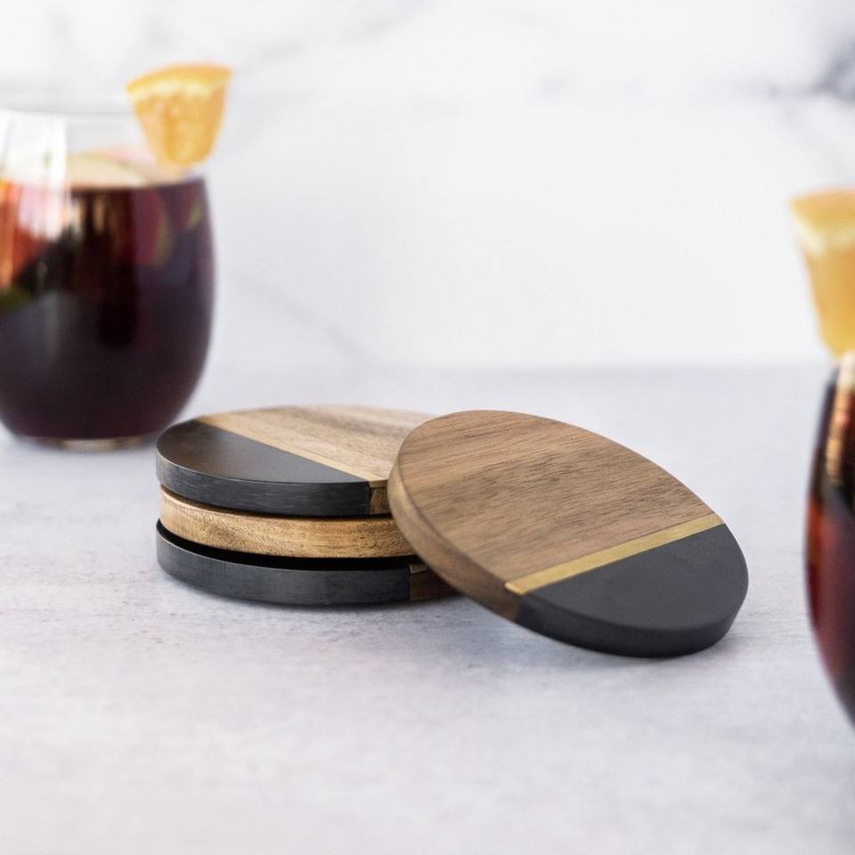 Fabricant Bois & Laiton Incrustation Métal Incrustation ensemble personnalisé carré noir Bois & Laiton Incrustation palette sous-verres De SCI
