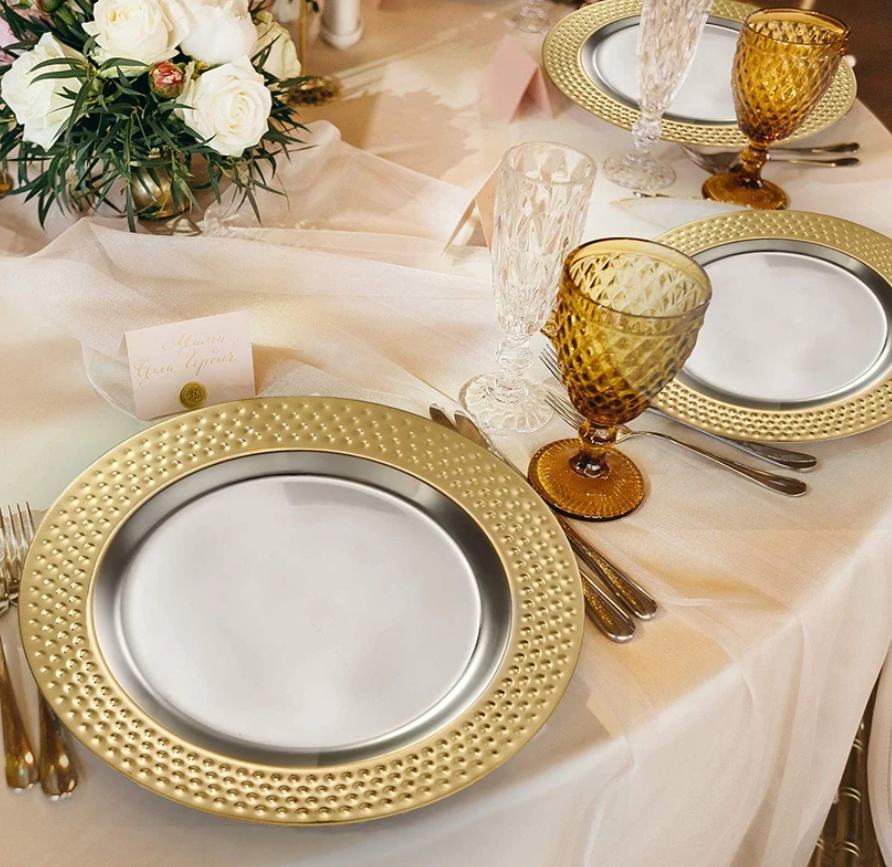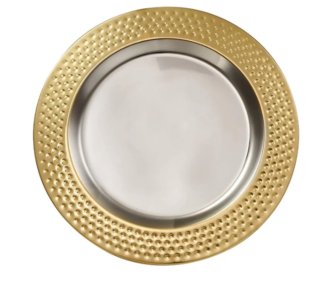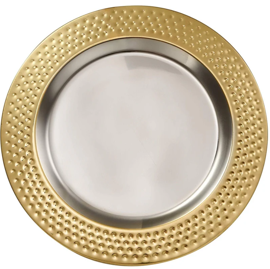 Manufacturer and Exporter for Customized Design Food Serving Charger Plate Golden Border Hammered Plate for wedding & home
