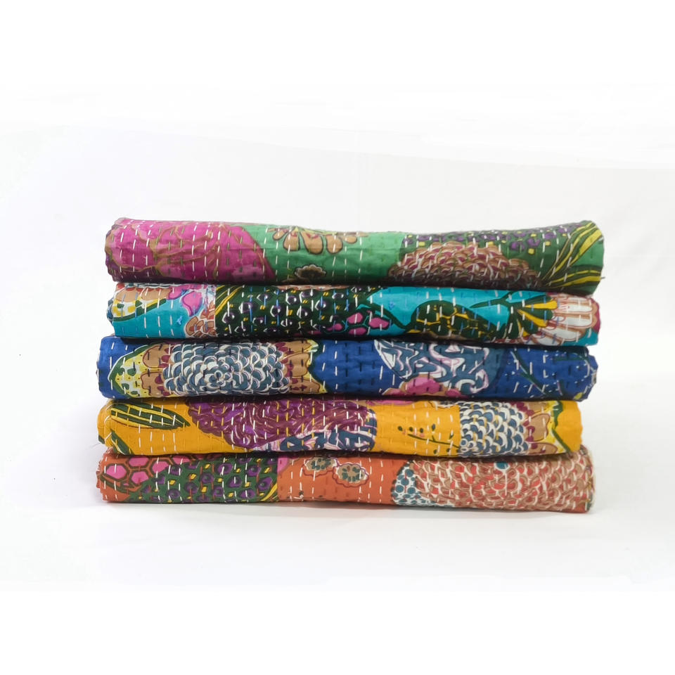 Tissu imprimé oiseaux cousu à la main:Couvre-lit matelassé cousu main Kantha