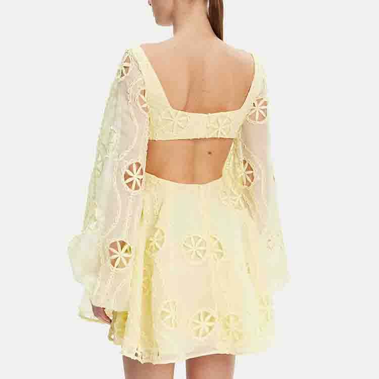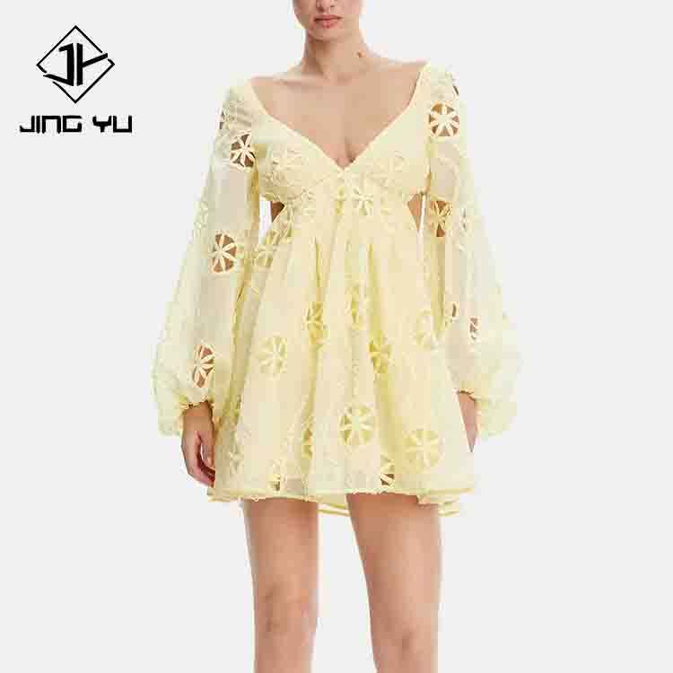 Manufacturer designs stylish deep V embroidered cutout Prom dresses custom 100% polyester mini dresses