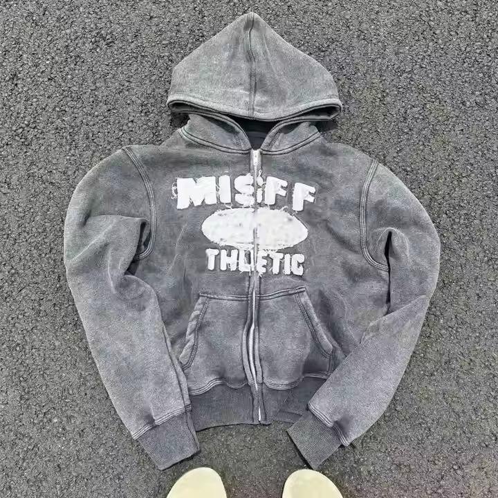 Fabricant de vêtements personnalisés brodés à l'acide lavage thermique appliqué en détresse broderie Patch Hoodies Sun Faded Hoodie