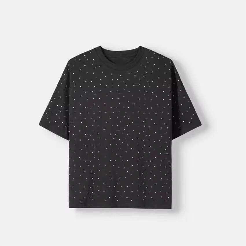 Manufacturer's Best Material 100% Cotton T-Shirts High Quality Rhinestone Embellished Letter Pattern Price