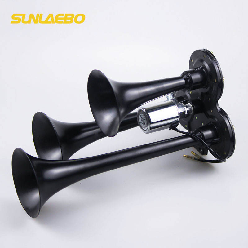 Trompette de train à air comprimé à 3 voies noire du fabricant avec 3 tuyaux