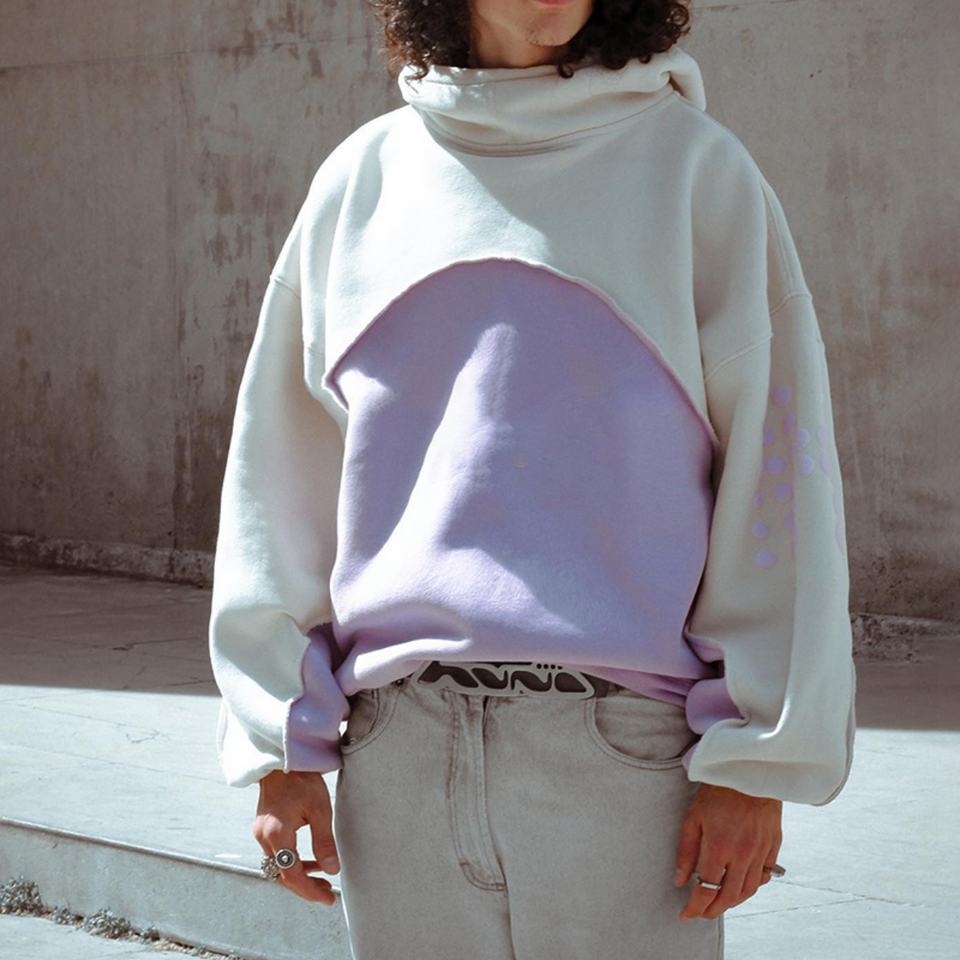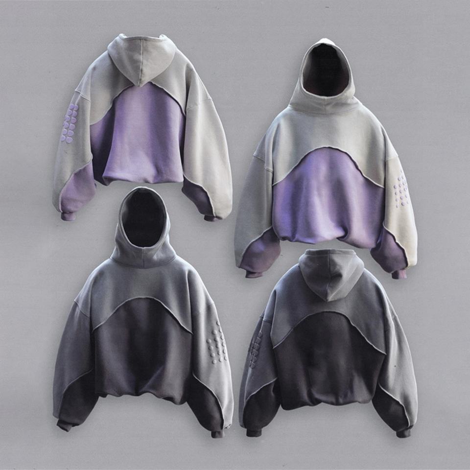 Hoodie surdimensionné personnalisé pour homme, coupe courte, en molleton bouclette de luxe, sans cordon, à épaules tombantes, color block, style vintage, poids lourd