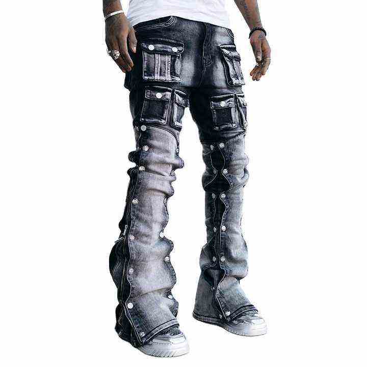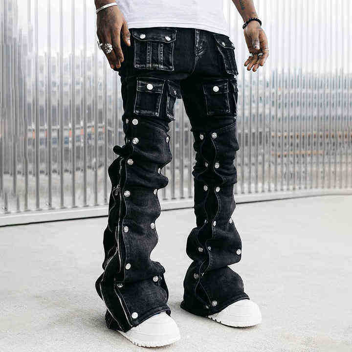 Jeans slim fit pour hommes, sur mesure, de haute qualité, à la mode, noirs, style motard, en denim, pour hommes, vente en gros
