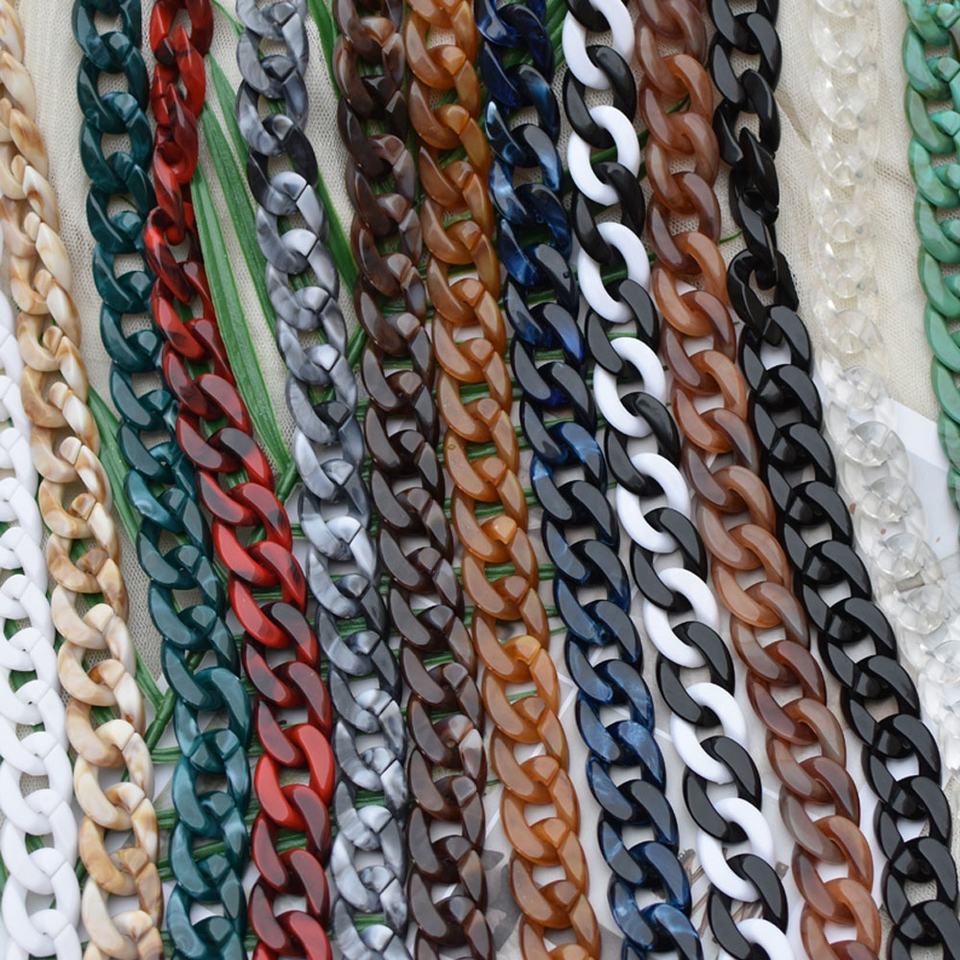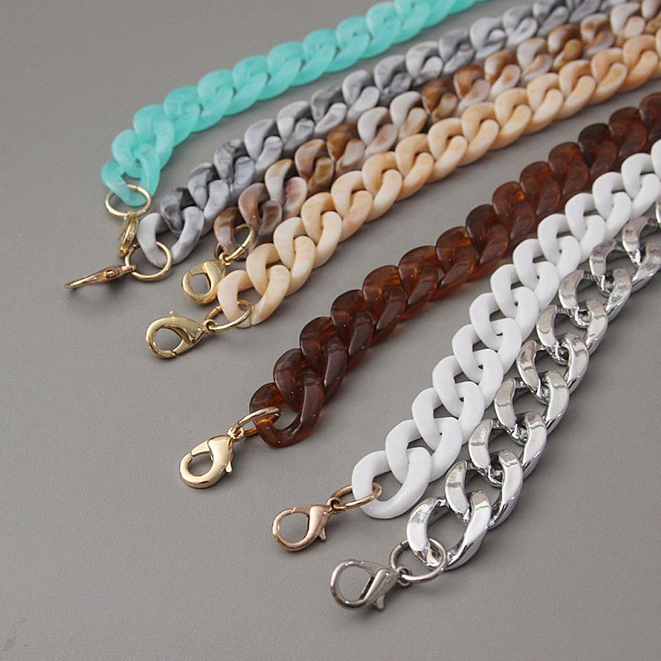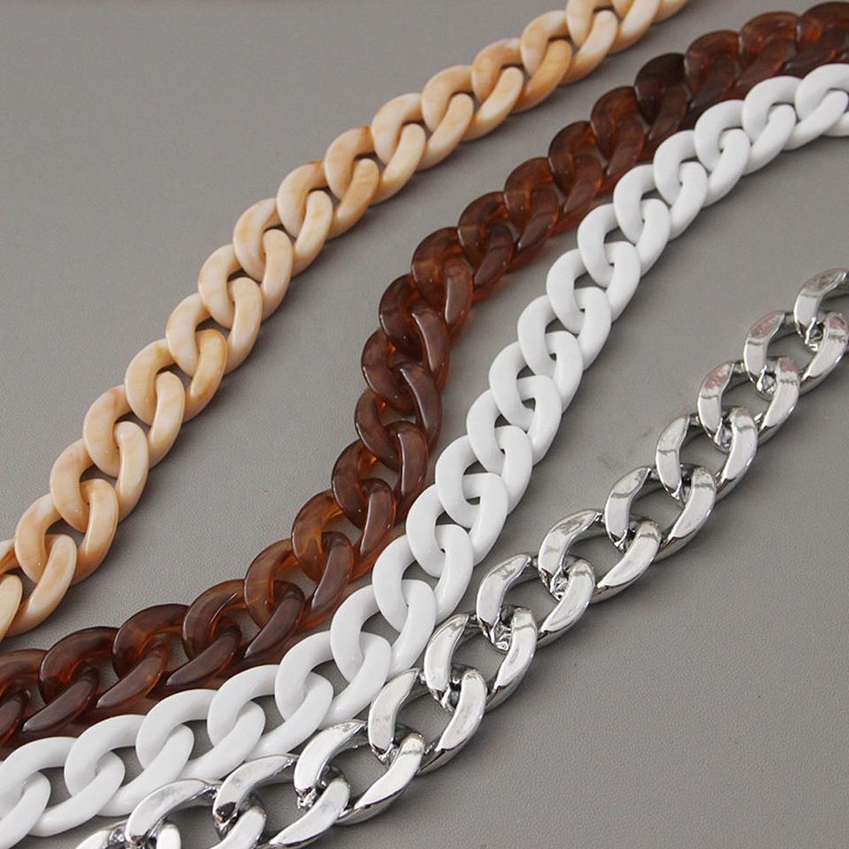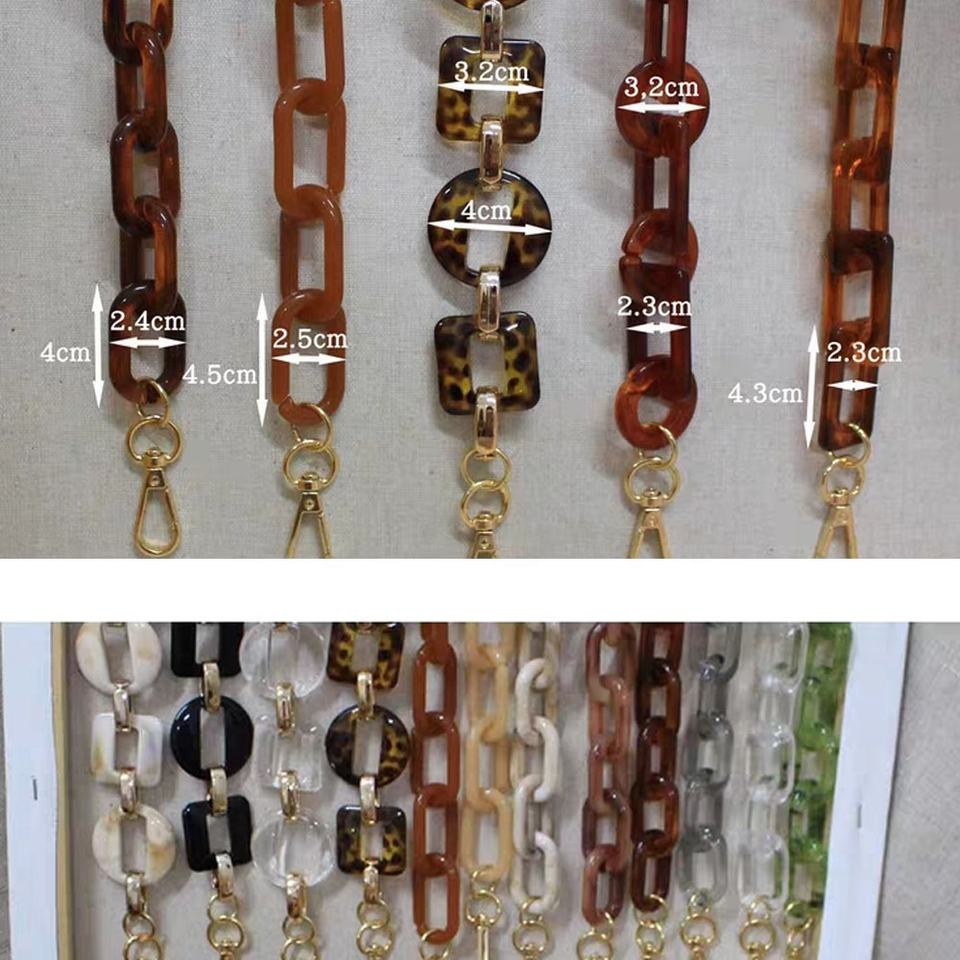 Fabricant de sacs acryliques de qualité directe, chaîne de sacs en plastique de bricolage, sacs avec chaîne en résine acrylique 20x30mm