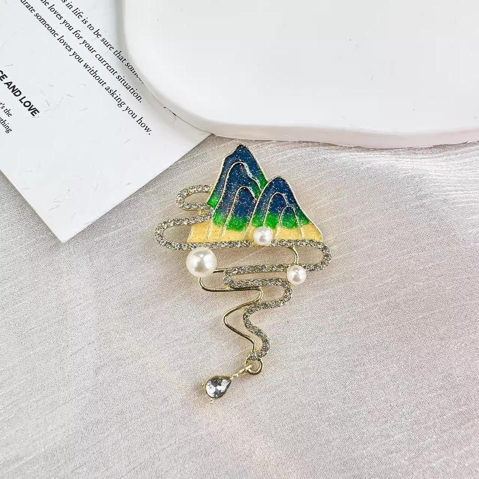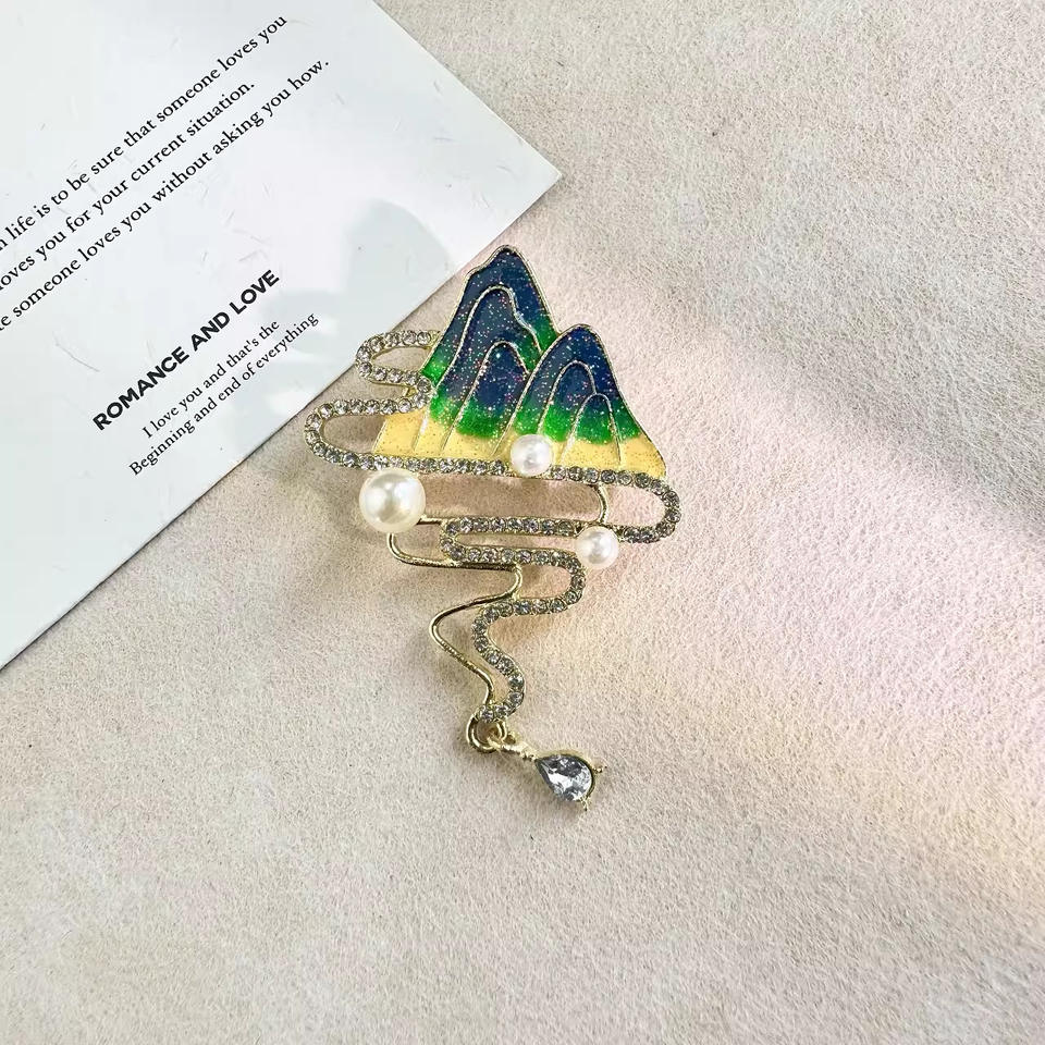 Fabricants vente directe paysage monde perle broche vintage vert eau château cheongsam accessoire broches