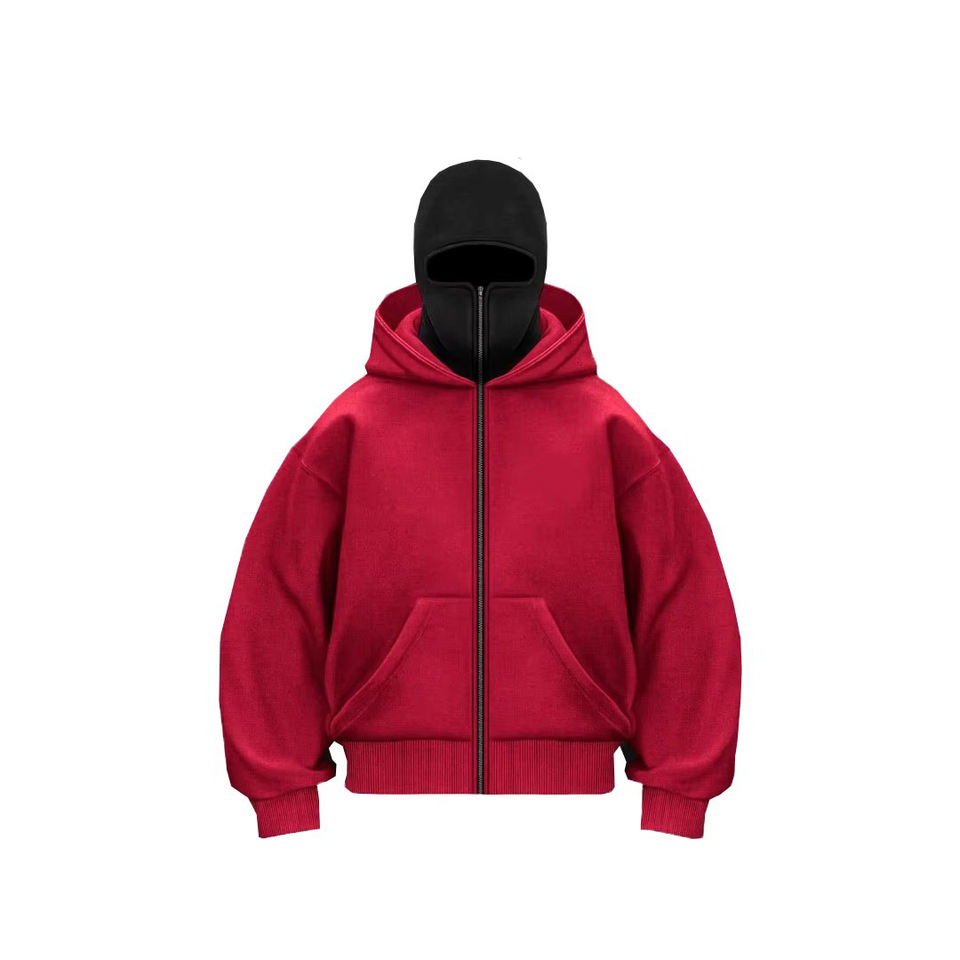 Sweat à capuche pour hommes, personnalisé, double couche, surdimensionné, style ninja, polaire, lourd, avec fermeture éclair, masque intégré