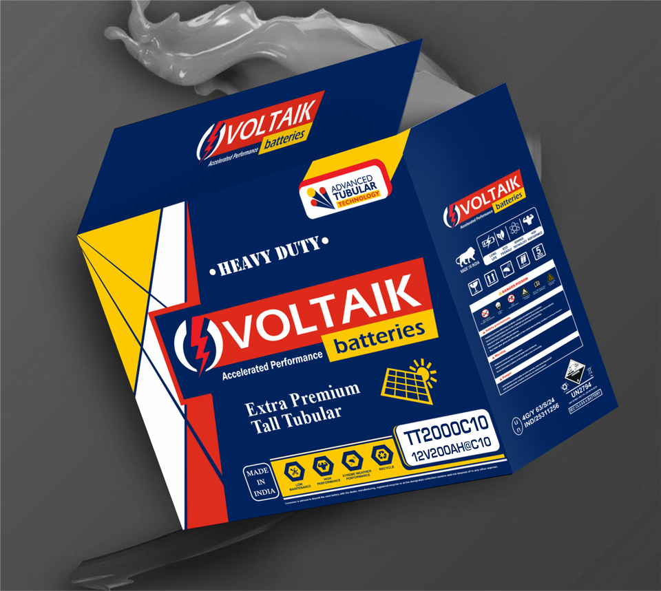 Batterie tubulaire haute performance 200Ah pour onduleur 12V, cycle profond, fabriquée en Inde par des fabricants indiens.