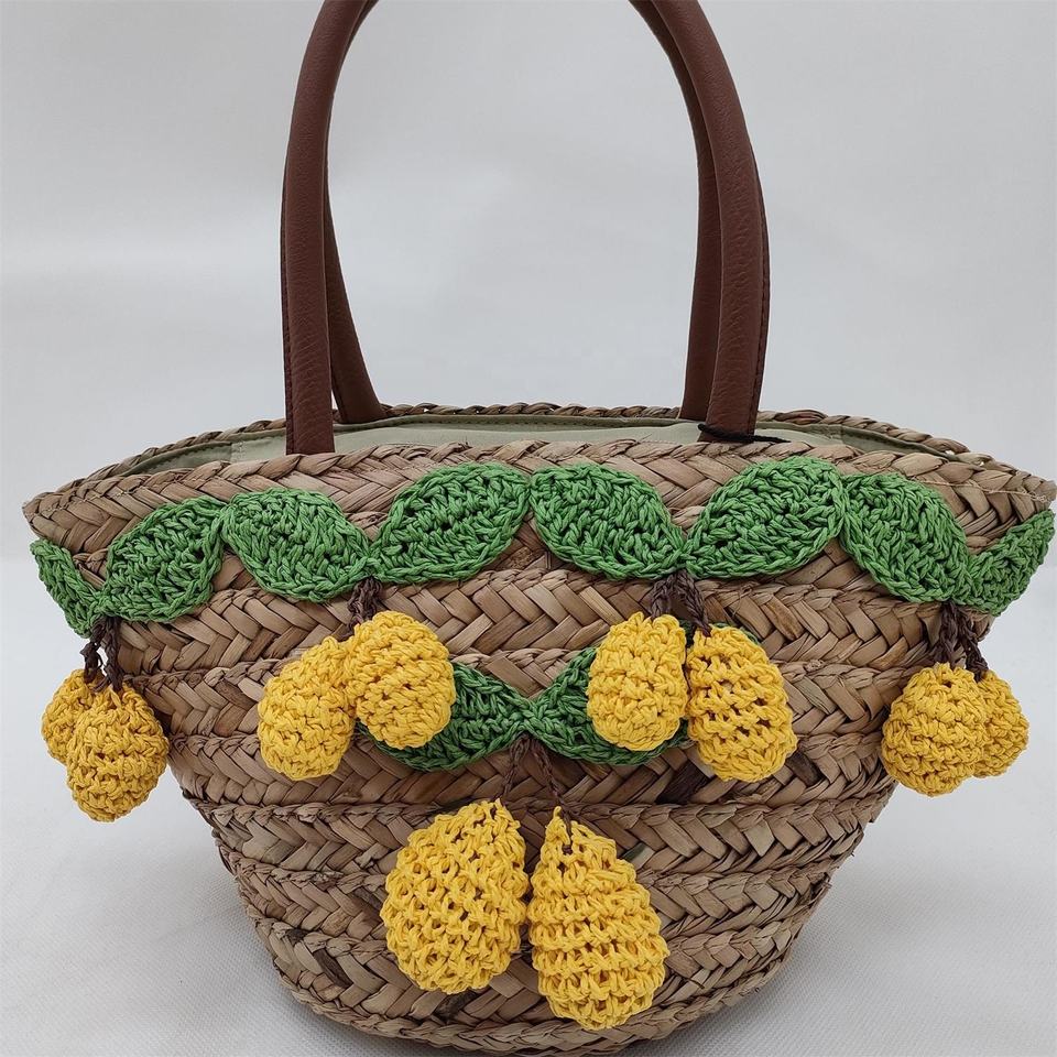 Nom:Sac en paille de jonc de mer avec décoration de mangue pour l'été
