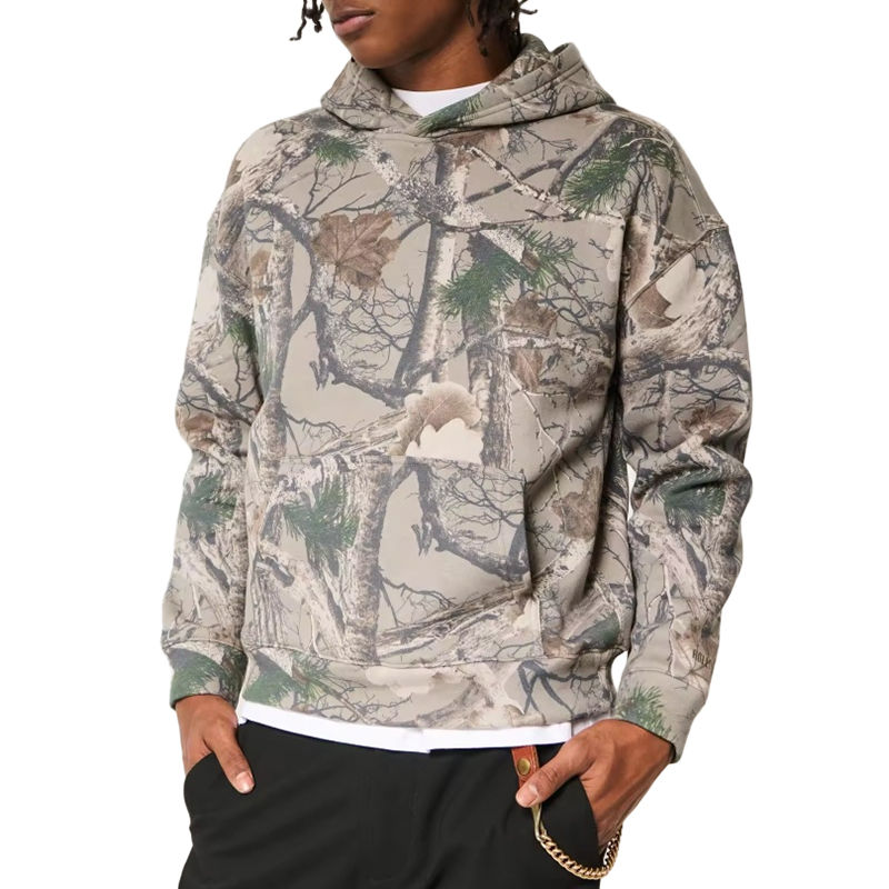 Sweat-shirt à capuche personnalisé pour homme, en polaire écologique, imprimé camouflage de chasse avec strass, imprimé arbre - Coton de haute qualité