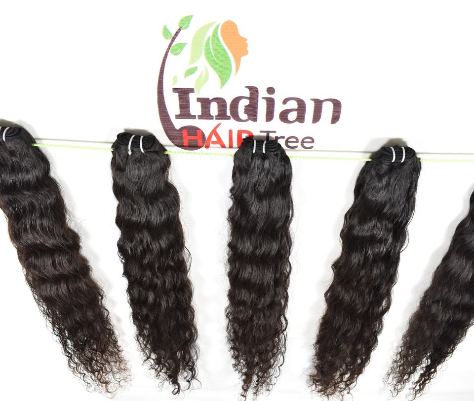 Extensions de cheveux humains indiens noirs 100 % naturels, ondulés, traités à la machine, provenant d'un seul donneur, tissage naturel, pour l'exportation