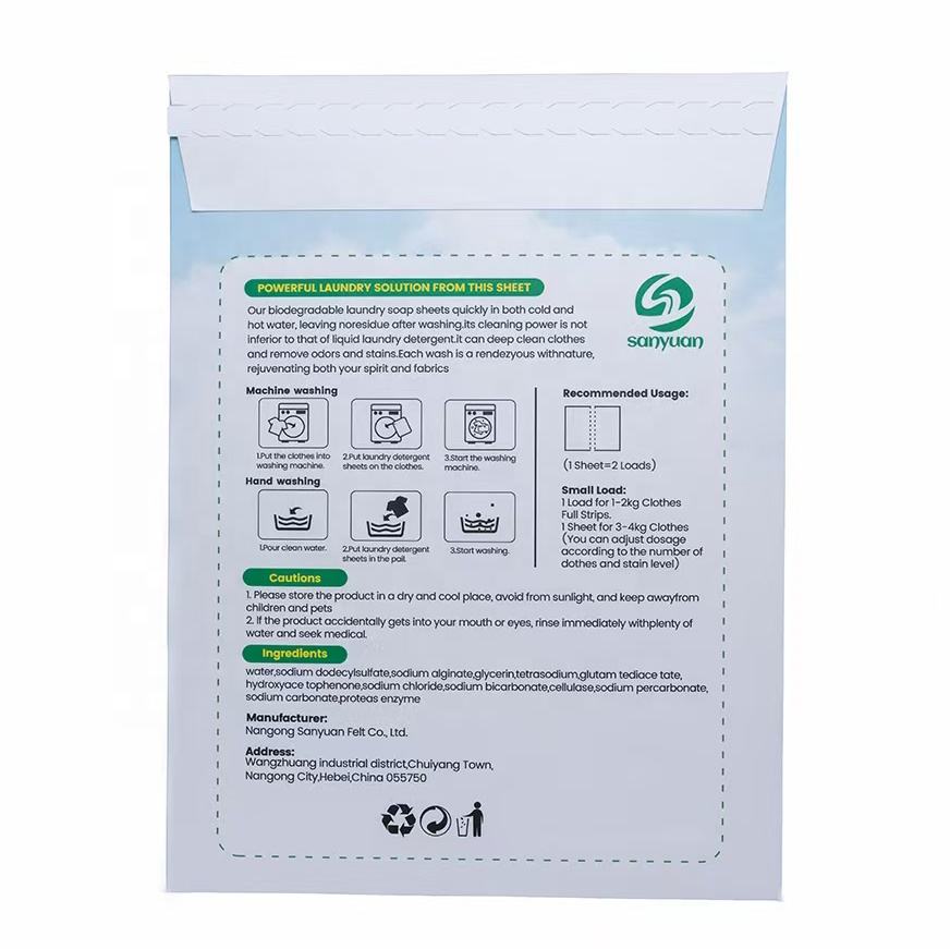 Entreprises manufacturières de feuilles de lessive écologiques en papier biologique personnalisées