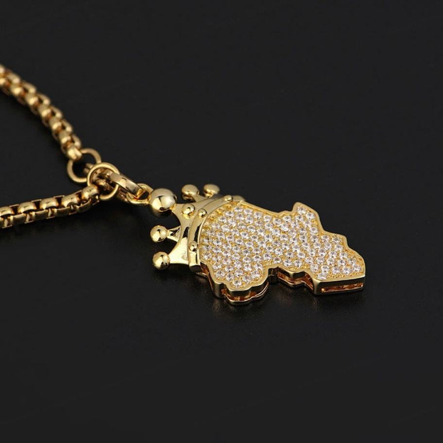 Colliers pendentifs de mode en laiton, design carte avec couronne, sertis de pierres brillantes, bijoux plaqués or et remplis d'or