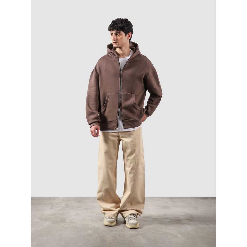 Sweat-shirt essentiel en molleton français marron érable avec fermeture éclair