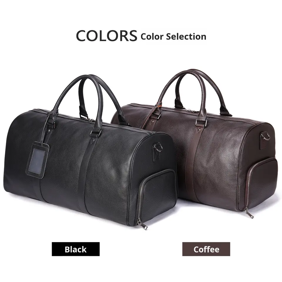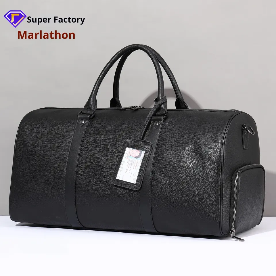 Marant Sac à bagages pour homme en cuir de vachette véritable Sac à main de voyage noir avec compartiment à chaussures Sportpacks