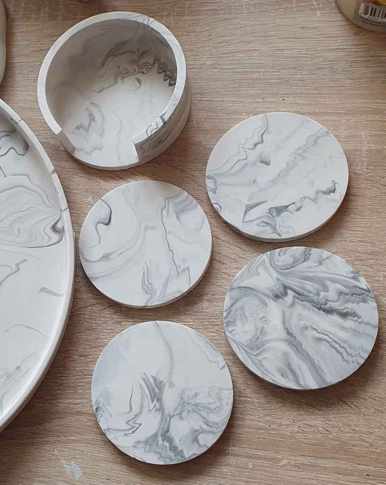 Ensemble de sous-verres en marbre abstrait, décoration de table élégante, cadeau pour la nouvelle maison
