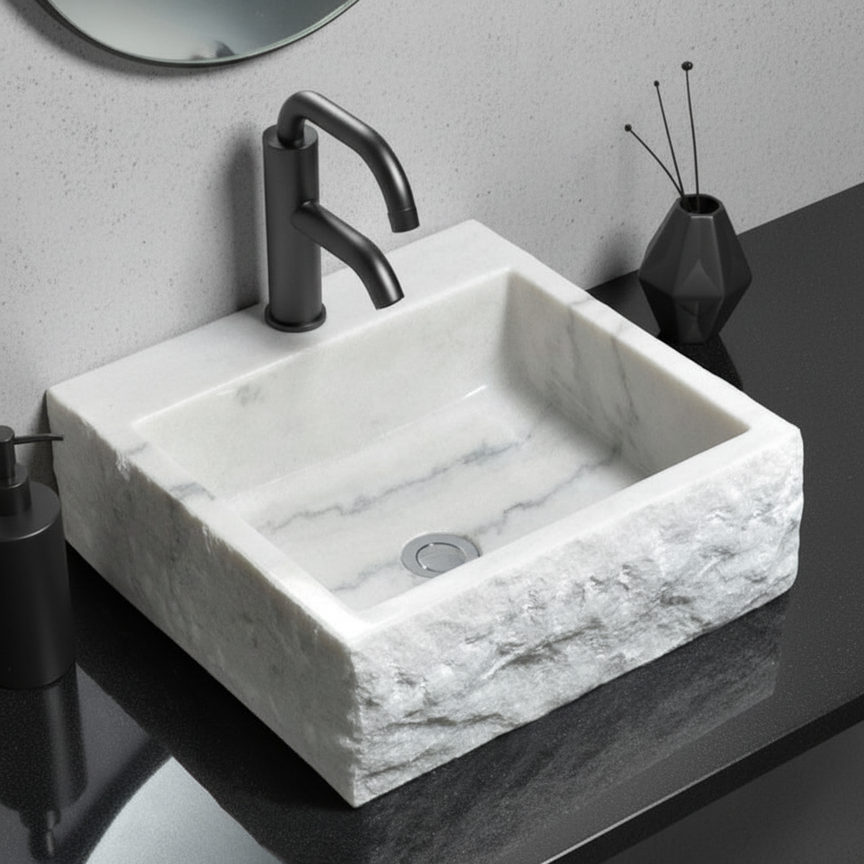 Lavabo carré en marbre, à trou unique, pour salle de bain, balcon, style nordique, rétro, pour la maison