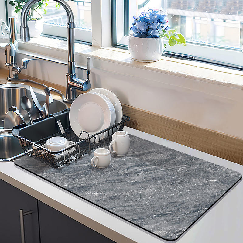 Tapis de séchage carré en polyester absorbant pour cuisine et salle à manger, motif marbre noir, 30x40cm, 40x60cm