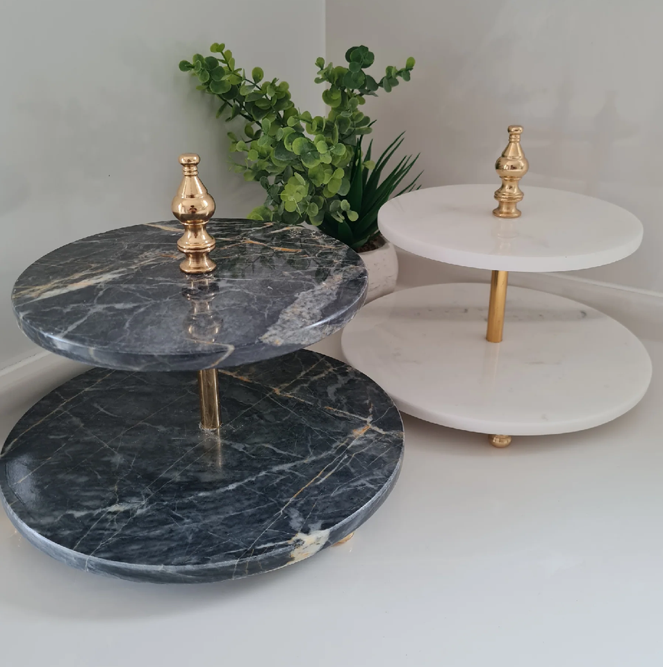 Support de service à gâteau en marbre forme ronde artisanat à la main porte-cupcake nouvellement artisanat support de service à dessert