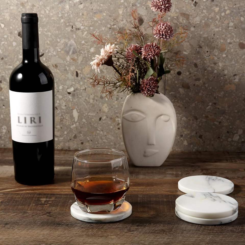 Sous-verres ronds en marbre, sous-verres en pierre pour boissons et café, sous-verres en marbre pour table basse, décoration de bar à domicile, choix de cadeau résistant à la chaleur