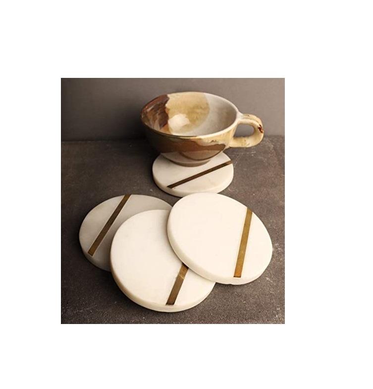 Sous-verres en marbre pour accessoires décoratifs de table de thé de restaurant Sous-verres en marbre blanc avec rebord en laiton