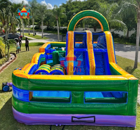 Château gonflable commercial en marbre pour l'extérieur avec toboggan, jeux sportifs pour parcours d'obstacles gonflable, combo toboggan