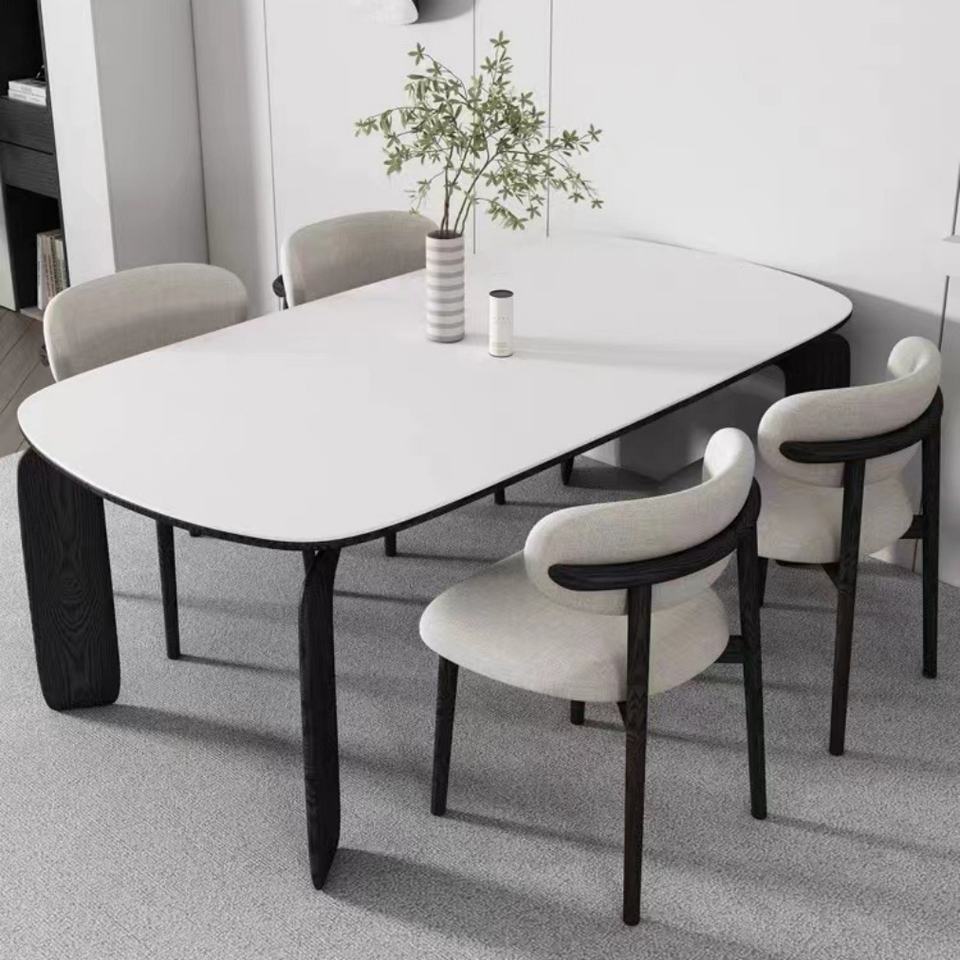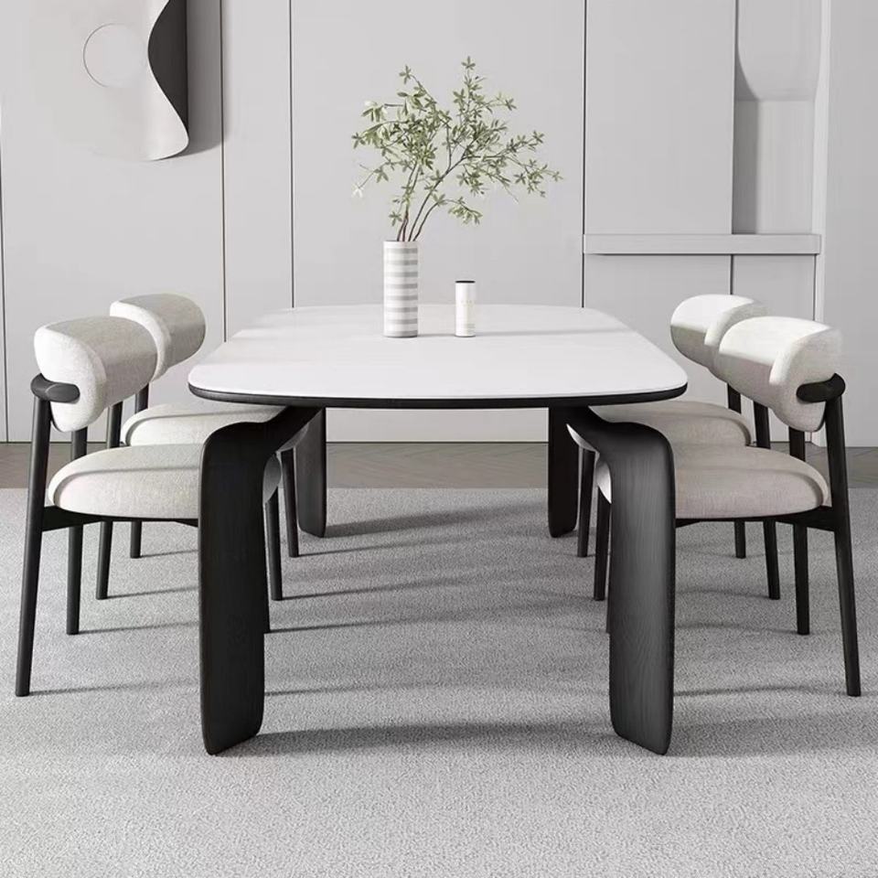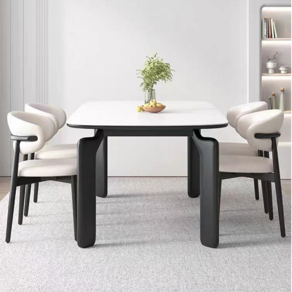 Table à manger en marbre rectangulaire moderne simple, plateau en pierre blanc mat, table et chaises