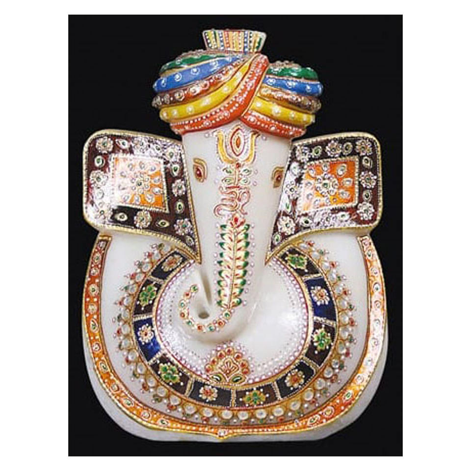 Nom du produit:Magnifique Chowki Ganesh peint en marbre doré