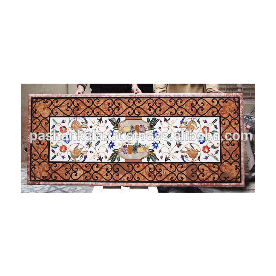 Marbre Table Top:Main de marbre Sculpture Inlay Travail À Manger Table Top, Indien De Table Design