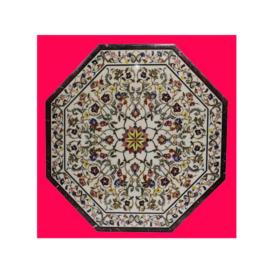 Nom du produit:Plateau de table en marbre avec incrustations de pierres semi-précieuses, fait main.