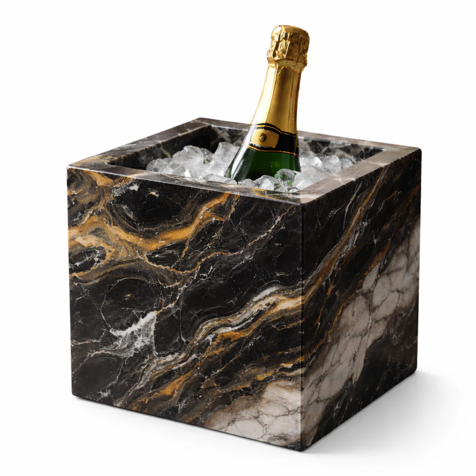 Seau à glace en marbre, forme ronde, design noir de luxe, éclairage LED, isolation sous vide, pour refroidir les boissons et la bière lors de fêtes