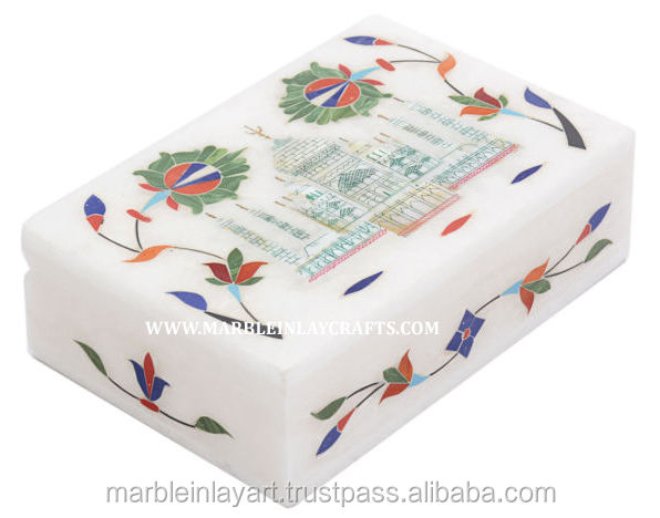 Boîtes en marbre avec incrustations de motifs du Taj Mahal