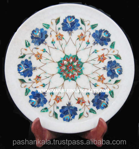 Assiette décorative en marbre incrusté, motif floral, assiettes en marbre incrusté