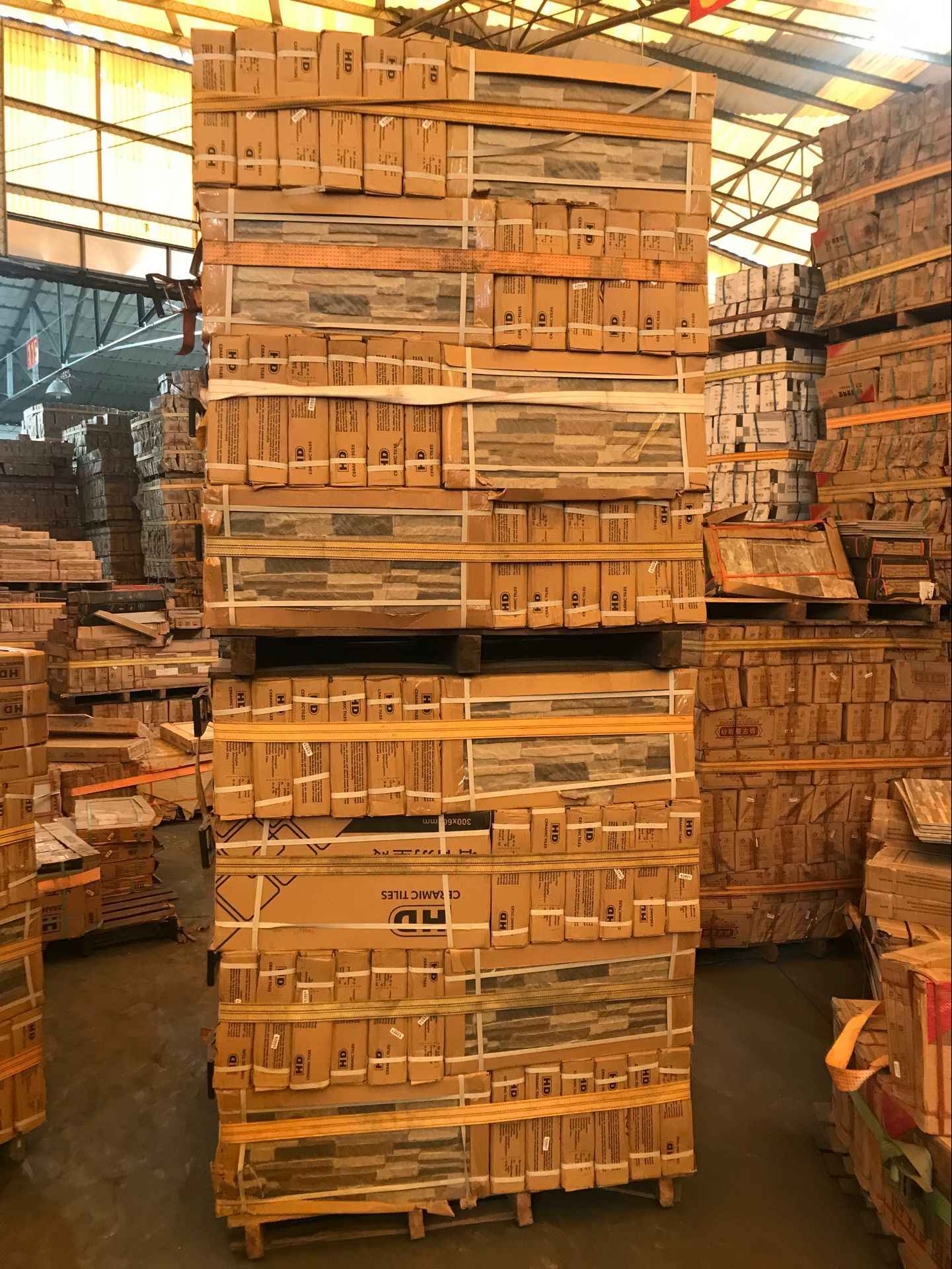 Cartons neutres avec des palettes en bois