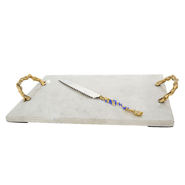 Vente directe usine – Plateau créatif rectangulaire en marbre avec poignées dorées et finition sous glaçure pour plats et assiettes