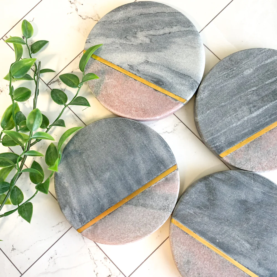 Sous-verre en marbre pour la cuisine domestique 4 pièces de pierre verte artisanat sous-verre rond en marbre fournisseur en gros