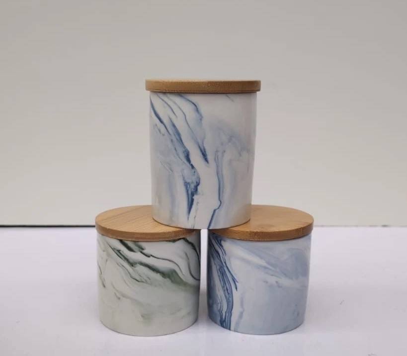 Ensemble de pots de rangement en céramique à motif marbré avec couvercle en bambou, récipient hermétique pour aliments, organisateur de cuisine durable