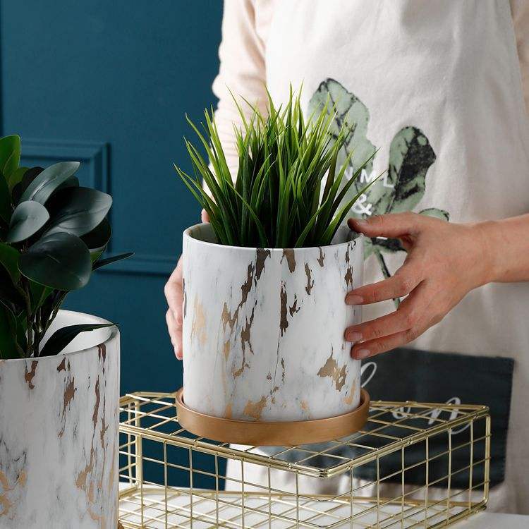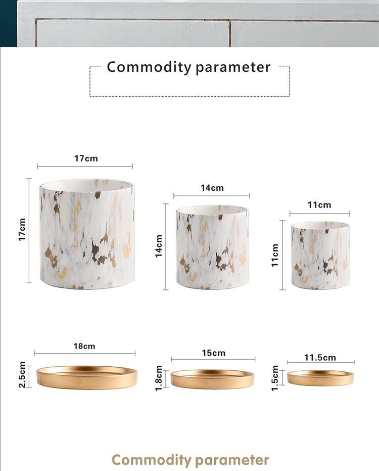 Pots en marbre gros pots de plantes bonsaï plante arbre artificiel plante de palmier en pot avec soucoupe en or pour la décoration de la maison