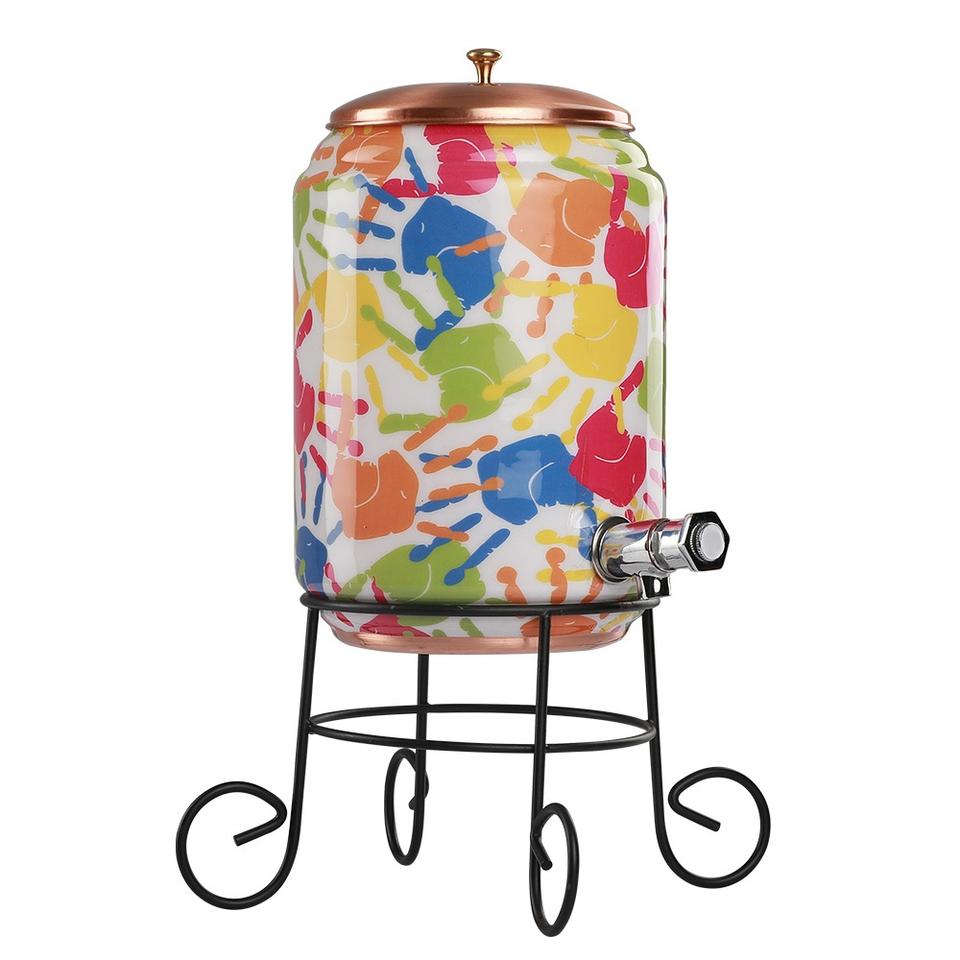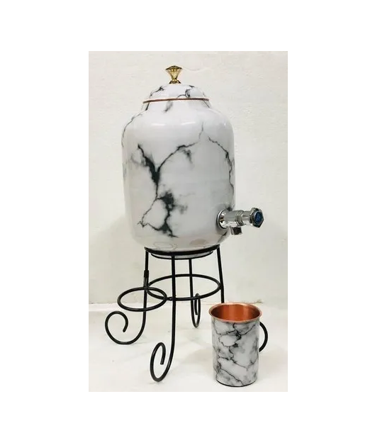 Marble Printed Design Matka Storage Container Pot at Wholesale Price 5 Ltrs Handmade Copper Water Pot With Stand & Glass