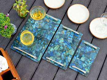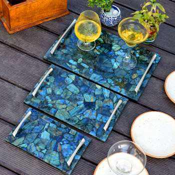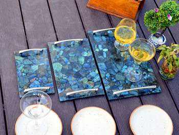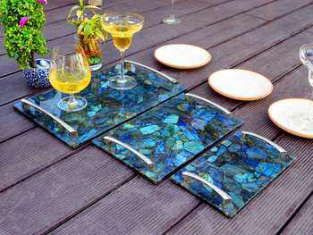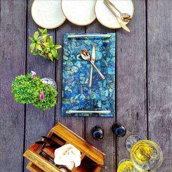 Plateau de service en marbre naturel fait main de luxe de haute qualité pour la décoration de mariage
