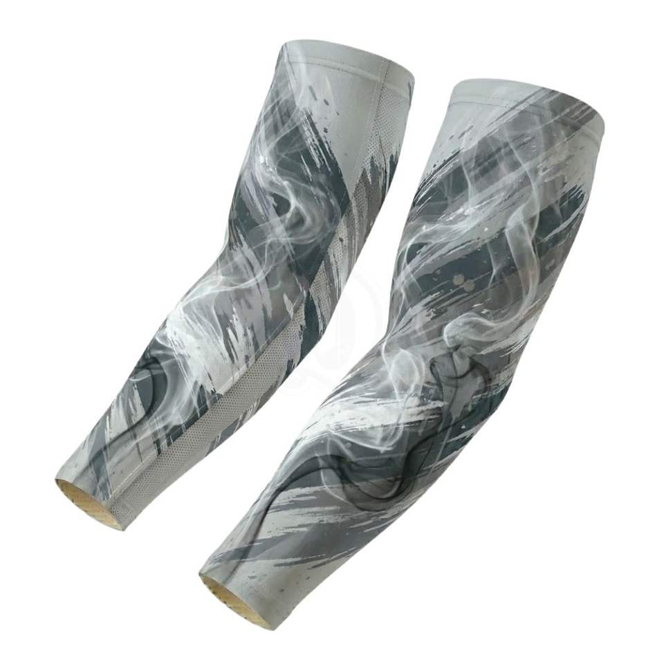 Manchons de bras à motif gris fumé marbré, impression numérique, refroidissement en soie glacée, protection UV, compression, pour la salle de sport et le fitness