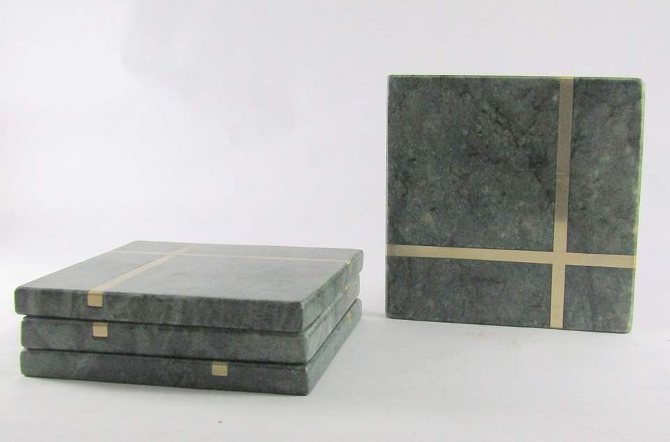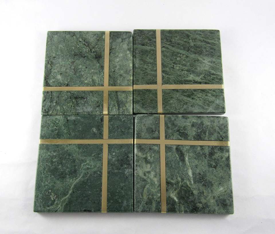 Sous-verres carrés en marbre avec incrustation en laiton, mini accessoires décoratifs pour table à manger, pour réchauds, tasses, verres, durables et longue durée, cadeau