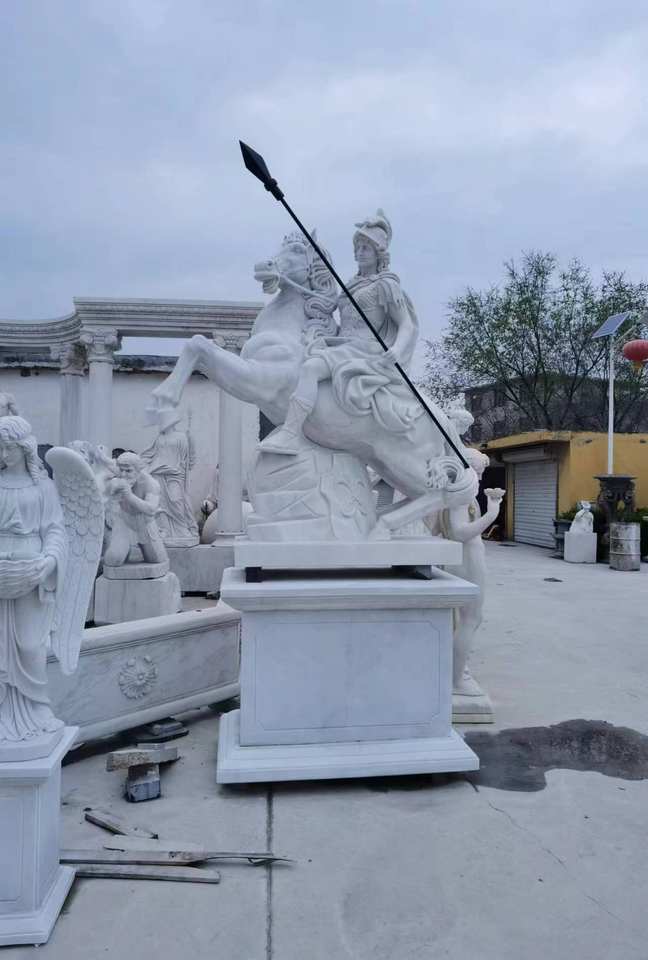 Marbre Saint George le Victorieux Cheval Dragon Tuer Statue Western Catholique Religieux Guerrier Saint George Statue