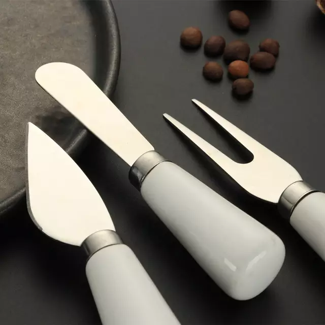 Couteau à fromage avec manche en pierre en marbre, 4 pièces, pour établi, acier inoxydable